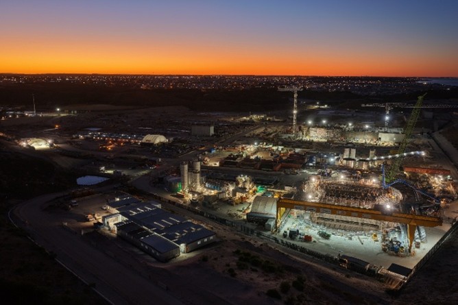 Construction continues to progress on Alkimos Seawater Desalination Plant, with steady advancement of marine works offshore, strong tunnelling progress, and major structural milestones achieved on site.