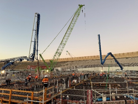 A key milestone was recently achieved with the final major concrete pour in the southern half of the peanut, which will house the Seawater Intake Pump Station. In the space of a day, the team poured 600 m³ of concrete, roughly enough to fill a whole tennis court to head height.