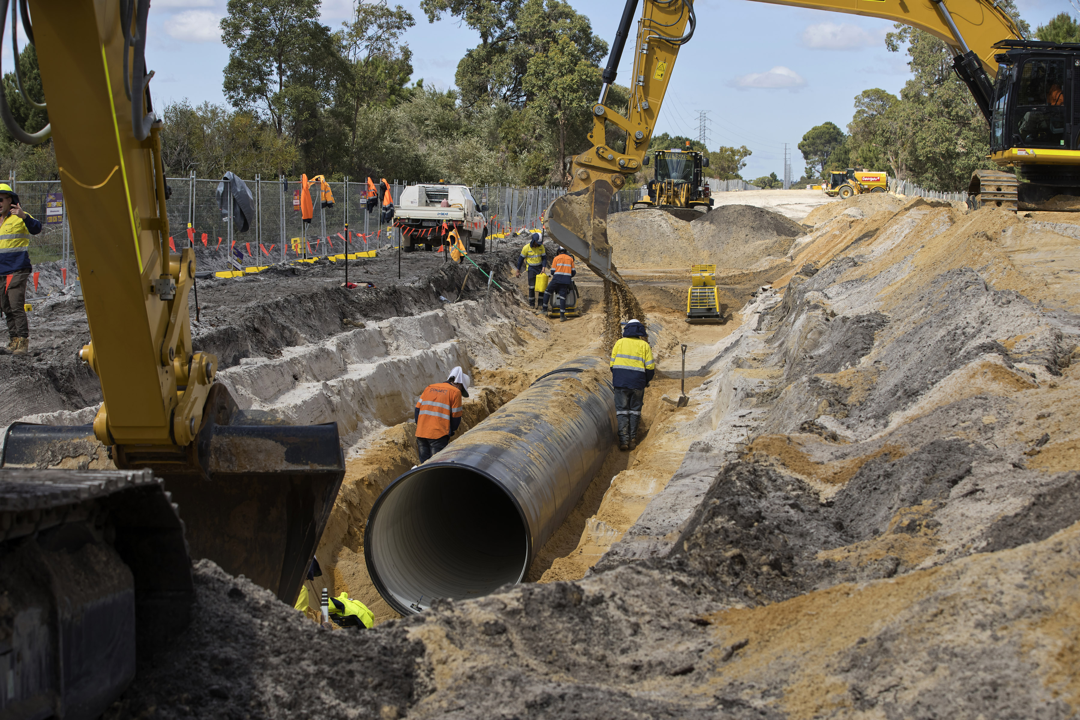 Around 6 kilometres of the pipeline is being constructed early as part of major transport infrastructure projects in Alkimos - some of these sections have already been completed.
